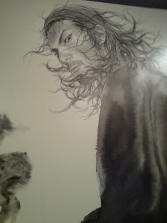 壁一面くらいのでっかい和紙に書かれた武蔵です。もちろん拡大コピーとかじゃないっすよ!!井上先生がでかい筆使って描いてるのがなんかの雑誌に載ってました。また行きたいなー1500円は破格!!