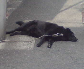 写真は、うちの近所の路上でめちゃめちゃ気持ち良さそうに寝てたワンコと、眠れぬ時の定番ヒツジ…の上にいるヤギです。